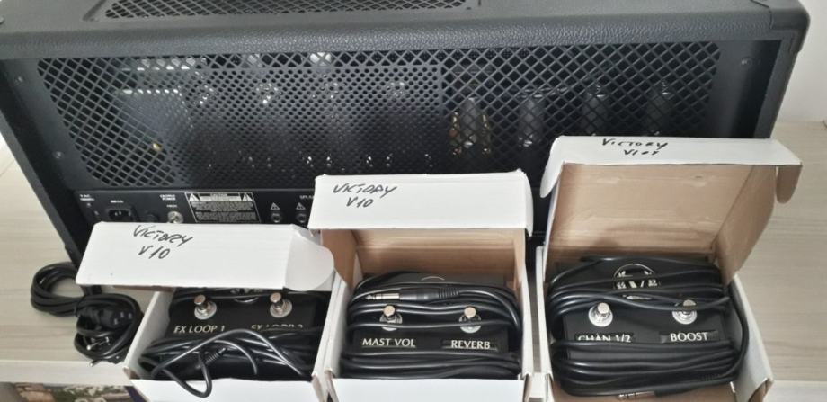 lampaško gitarsko pojačalo; handwired in the U.K.; 100 watt (mogućnost rada na 30 watt); koriste ga mnogi poznati glazbenici: Guthrie Govan, Dave Murray, Martin Kidd (vlasnik Victory amps); mogućnost odabira između 6L6 i EL34 lampi; 2 effect loopa, 2 master volumena, 2 zasebna reverba; dolazi s čak 3 footswitcha, tako da kompletnu kontrolu nad pojačalom imate pod nogama. Izvrsno očuvano.