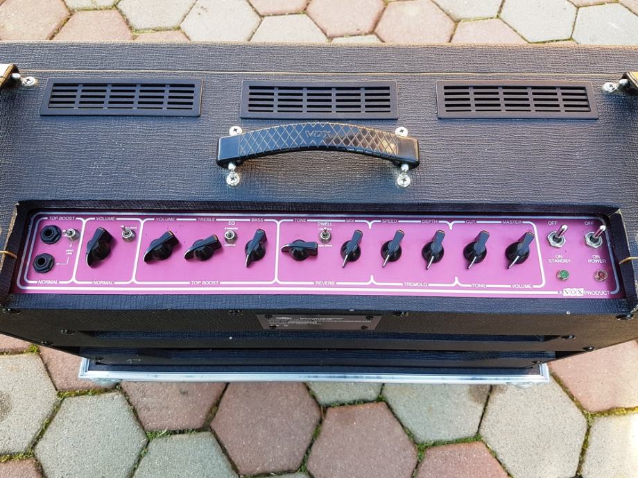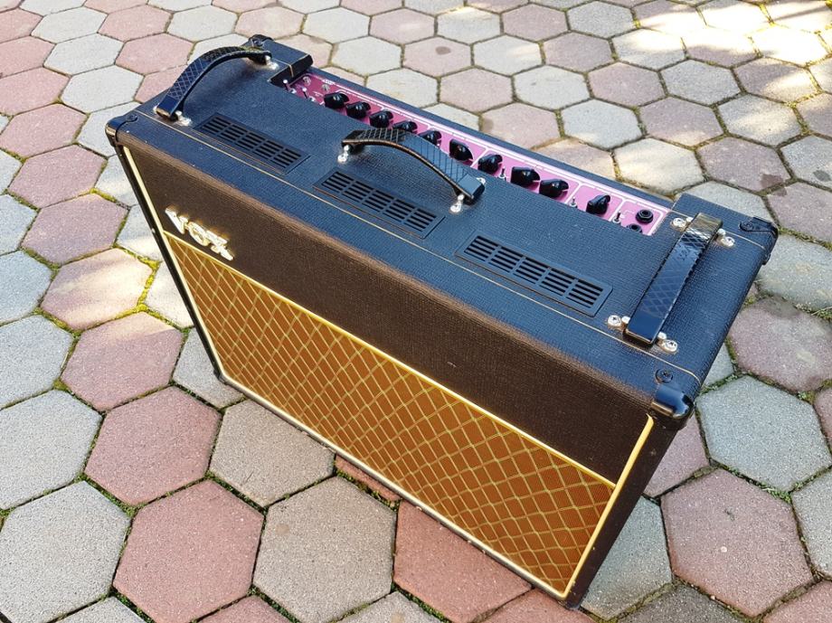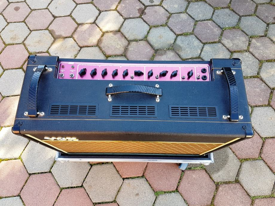 legendarno lampaško pojačalo, snage 30 watt, s 2 x 12" Celestion Blue Bulldog alnico zvučnicima; 3x 12AX7 (ECC83) preamp tubes, 4x EL84 Power amp tubes, 4 Inputs high & low (top boost & normal). Uz pojačalo dolazi i originalni footswitch. Odlično očuvano, napravljen veliki servis u ovlaštenom servisu (dokumentacija u prilogu).