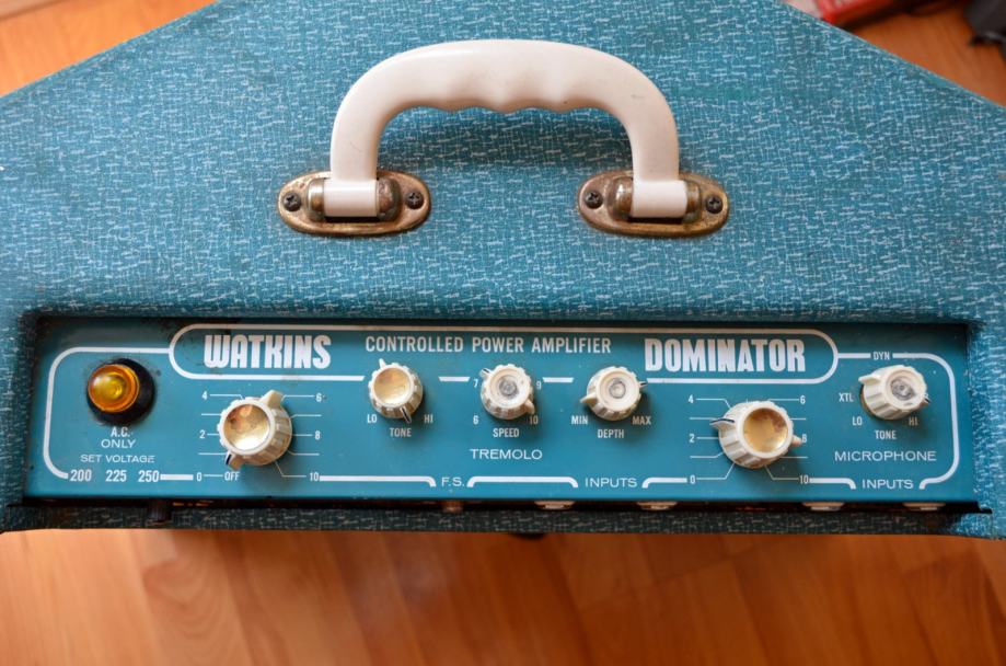 Prodajem izuzetno gitarsko pojacalo, cuveni Watkins Dominator iz 1962. u originalnom i odlicnom stanju. 17 wati prelijepog clean zvuka, ali i vrhunskog drive-a kada se pojaca, po cemu je i poznat. 3 x ECC83 i EL84 lampe. Prica kaze da je Marshall koristio bas ovo pojacalo kada je radio prvo combo pojacalo. Pojacalo je u odlicnom stanju, nema nikakvih problema i ima vibrato pedalu.