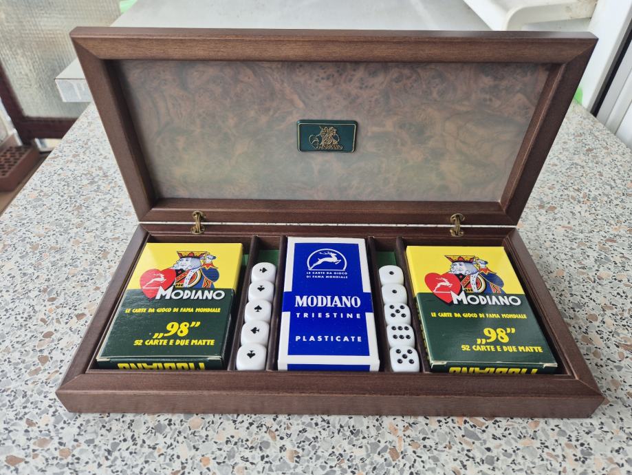 Poker set talijanske marke Modiano, nekorišten, savršeno očuvan u drvenoj kutiji.