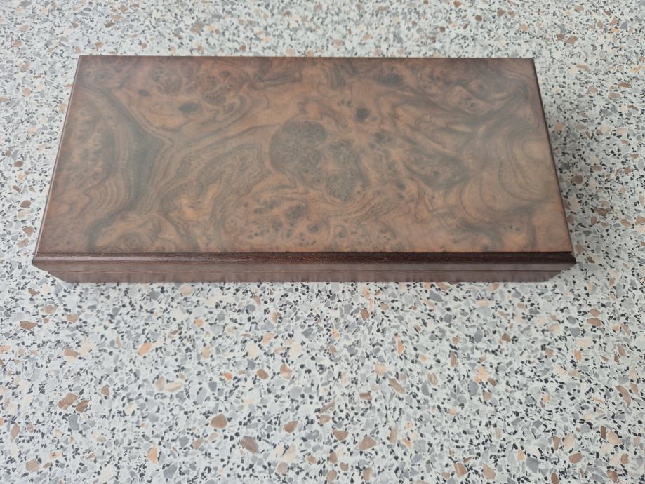 Drvena kutija sa plišanom unutrašnjosću za elegantno skladištenje.