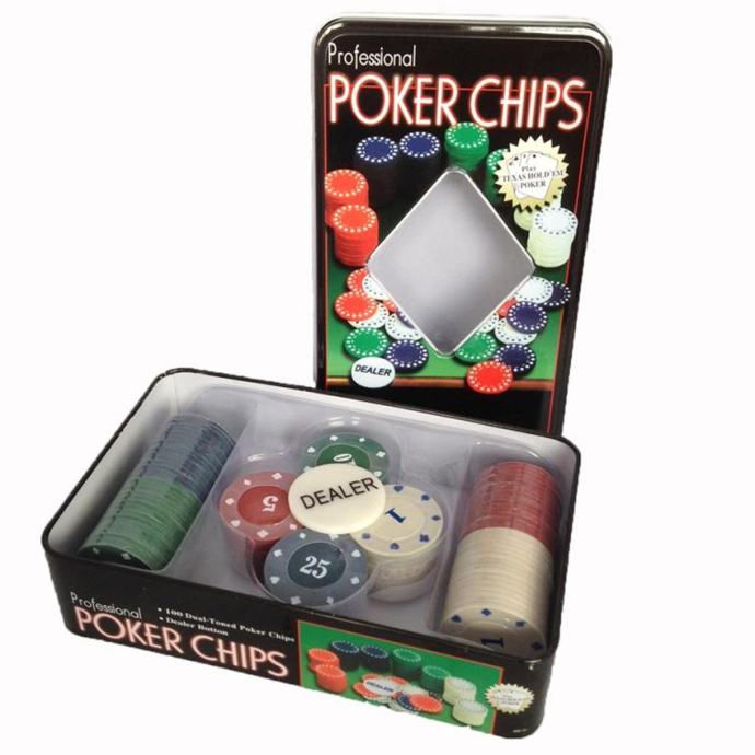 100 profesionalnih čipova numerirani od 1€, 5€, 10€, 25€, 50€
