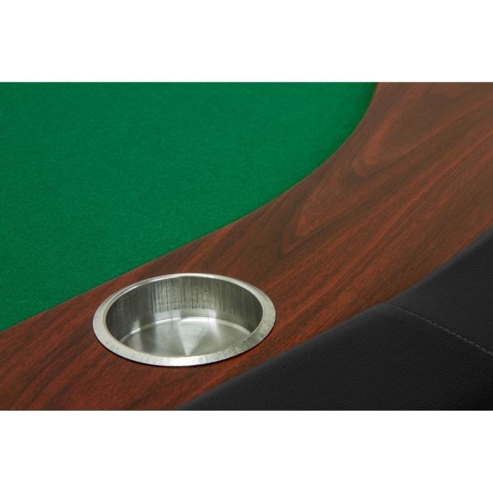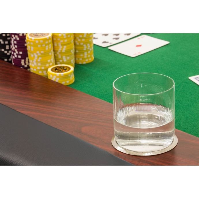 Na rubu stola supodstavljeni nasloni za ruke. Stol također ima oslonac za noge od nehrđajućeg čelika.Unutarnji prsten u drvu mahagonija pruža dovoljno prostora za pohranu poker čipova