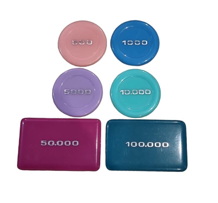 ŽETONU SU NUMERIRANI, APOENI: 500, 1000, 5000, 10000, 50 000, 100 000.