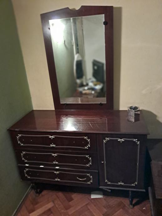 Komoda dužina 122, visina bez ogledala 86, visina sa ogledalom 182, dubina 48. Ormarić duzina 50, visina 57, dubina 38