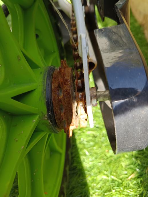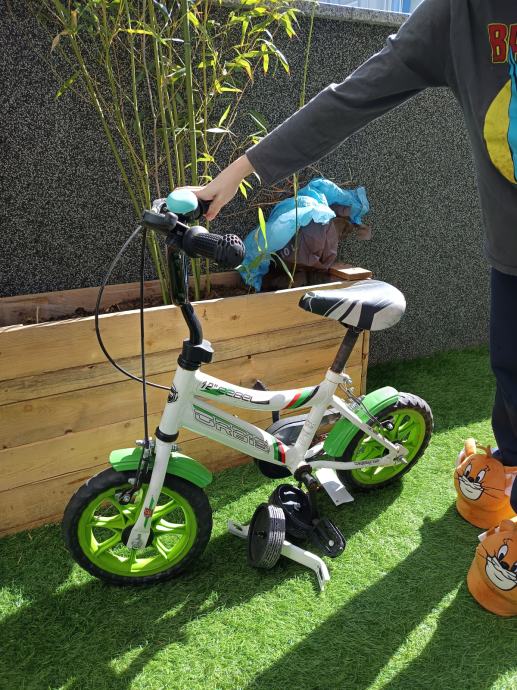 Biciklić za djecu na lanac. Kotači spužvasti. Treba pošravit lanac, zatrgnuti i namazati.