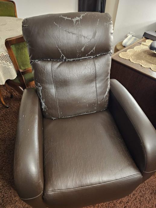 Rabljene fotelje (2), ispravne (mogućnost ležećeg položaja), ali s potrošenom/oštećenom eko kožom pa je potrebno prekriti ili presvuci. Vaše nošenje s 1. kata i prijevoz.