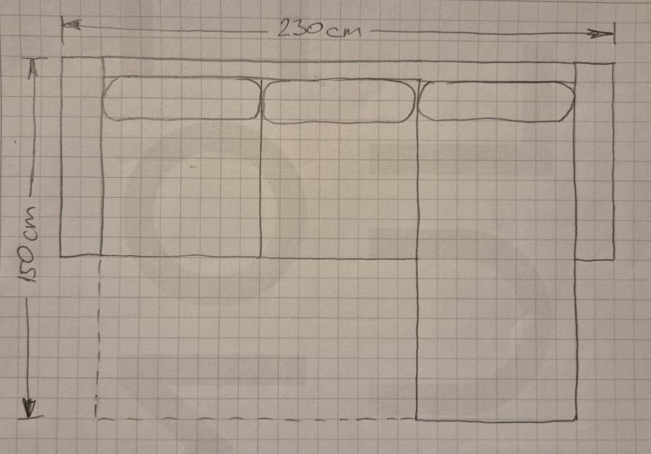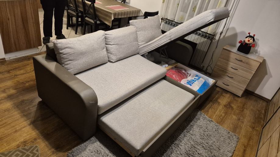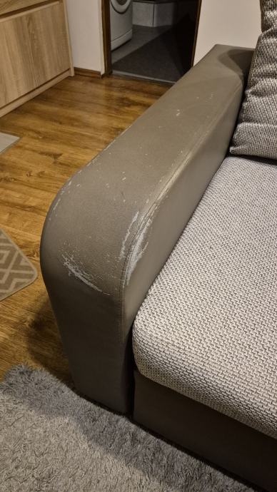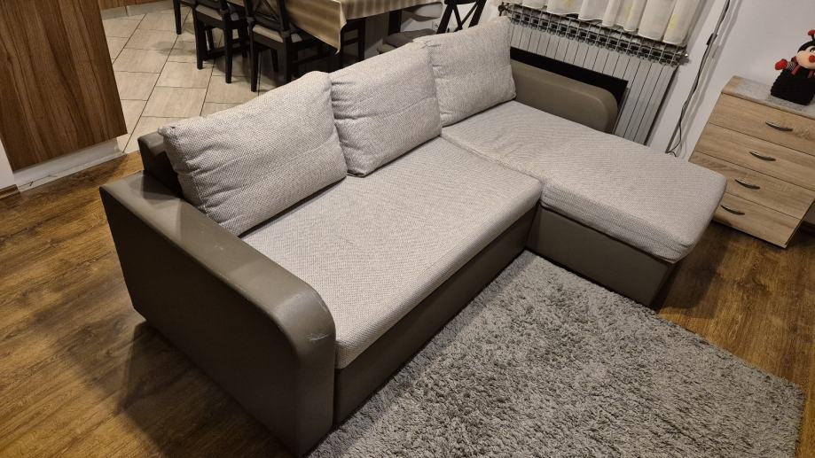 1. kutnu garnituru 230×150 cm, čvrsta ali s oštećenjima na naslonu( vidljivo na slikama)
