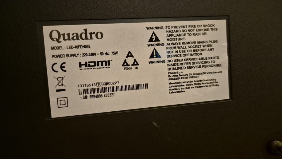 2. stariji ispravan TV Quadro 40" (102 cm) sa DVBT-2 i daljinskim.