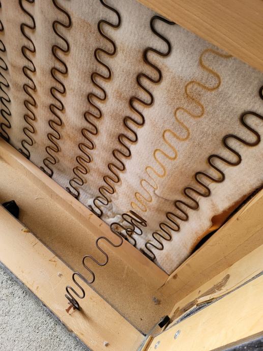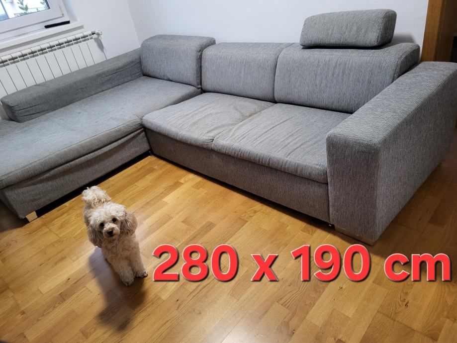 Kutna garnitura, izvlačivi ležaj, spužva u solidnom stanju. potrebno kemijsko čišćenje i popravak jedne žice na podnici.