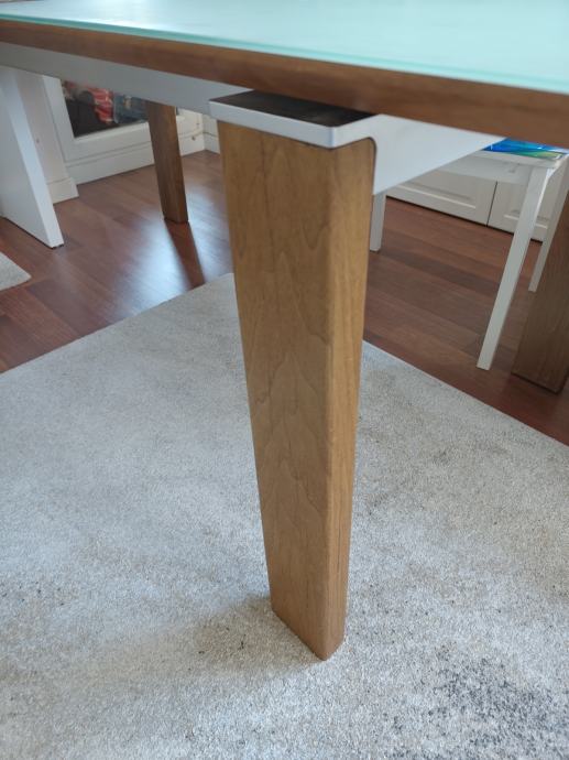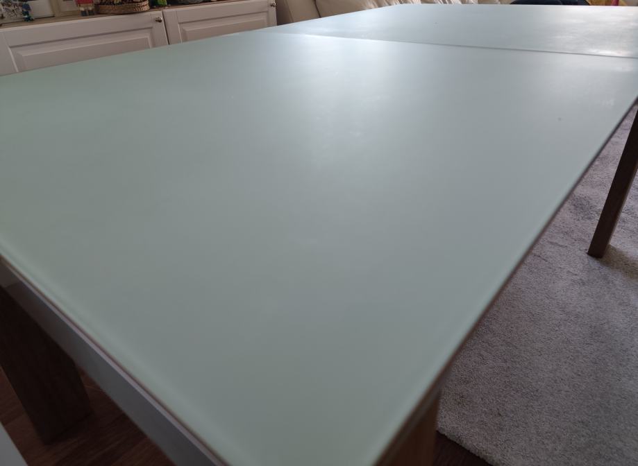 Poklanjam neoštećen blagovaonski stol sa pločom od mat stakla koji se moze razvući. Sredisnji dio je od drveta. Dimenzije 90 x 160 cm. U dužoj verziji je 220cm dugačak.