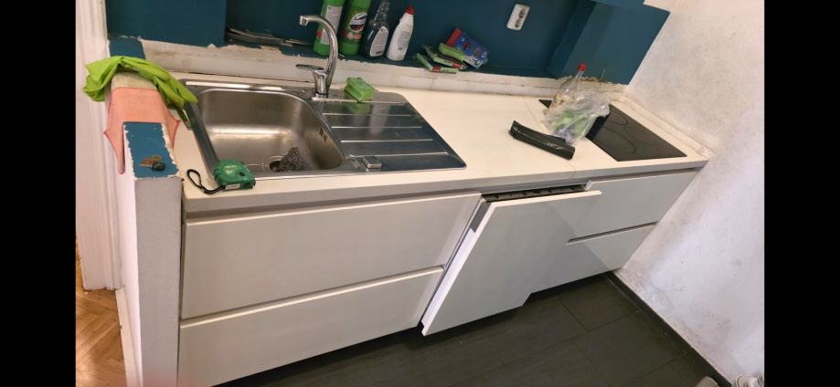 Poklanjam u kompletu dio kuhinje. Dužina je 240cm. Indukcijska ploča radi normalno, perilica se dugo nije palila. Suduper očuvan, kao i špina.