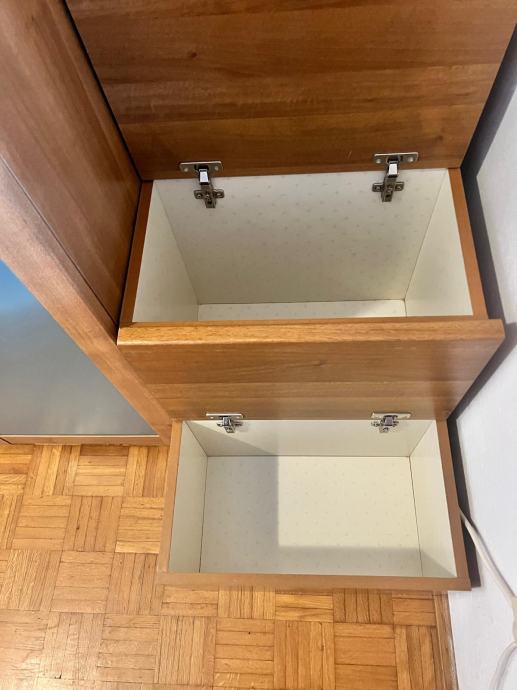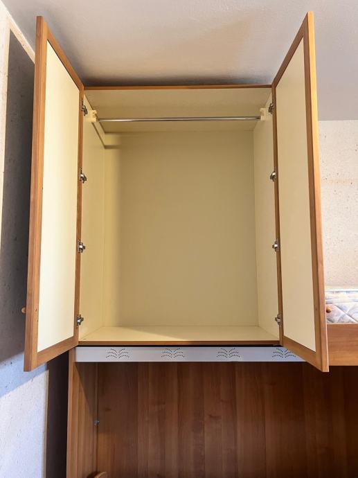 U to dolazi sve s fotografija; 2 kreveta, 2 ormara, 2 radna stola, regal, te stepenice koje se mogu otvarati. Sveukupna širina kreveta na kat s ormarima je 3,5m.