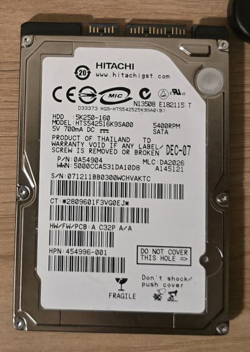 Poklanjam ispravan HDD HITACHI od 160GB veličine 2.5''