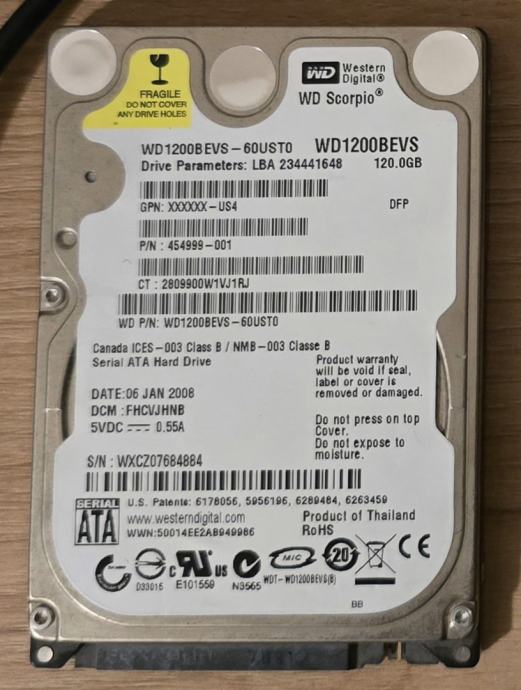 Poklanjam ispravan HDD Western Digital od 120GB veličine 2.5''