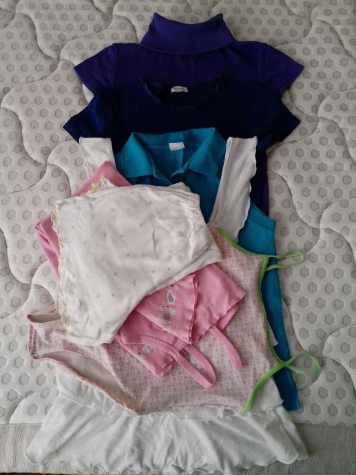 LOT se sastoji od 4 majice kratkih rukava, 1 ljetne pidžame, 1 haljine na bretele i 1 kupaćeg kostima