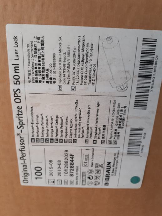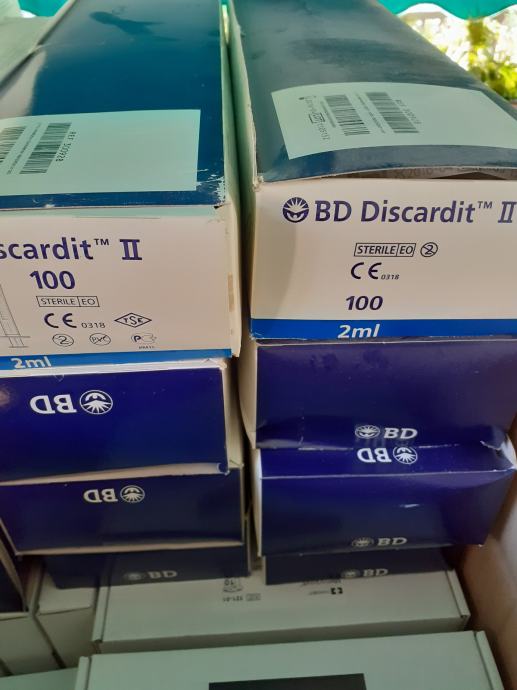 Šprice 50 ml.cca 700kom.šprice 5ml.cca 200kom.,šprice 2ml. 14 kutija x 100kom., gazice za ispod traheostome cca 150kom.,trakice za fiksiranje traheostome cca 150kom.,sonde CH-10 (crne) cca 500 kom.