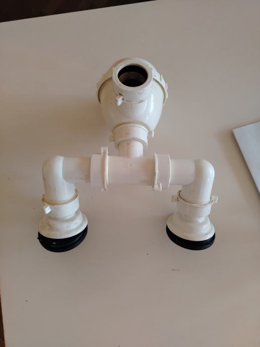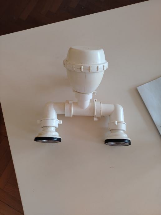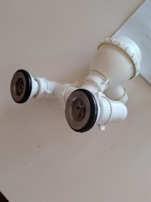 Poklanjam rabljeni sifon za sudoper. Bijele boje, plastični, s dva odvodna priključka