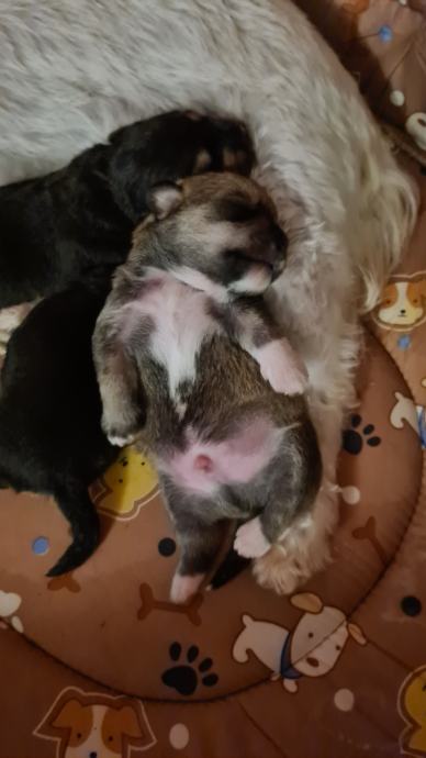 Poklanjam štence. Mama maltezer, tata nepoznata pasmina, veličine maltezera. Štenci su rođeni 22.10.23. i budu spremni za preuzimanje 22.12.2023. Idealan božićni poklon :-) Ovaj tjedan će biti cijepljeni i čišćeni od parazita. Štenci su veseli i razigrani, dva dečka i jedna cura.