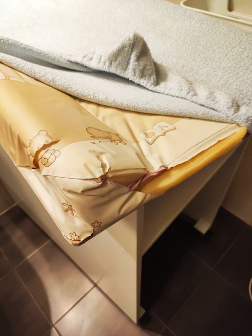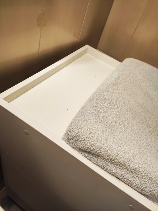 Poklanjamo prematalicu za bebe ručno izrađenu, od bijelog iverala, dimenzija 80 x 52,5 cm.