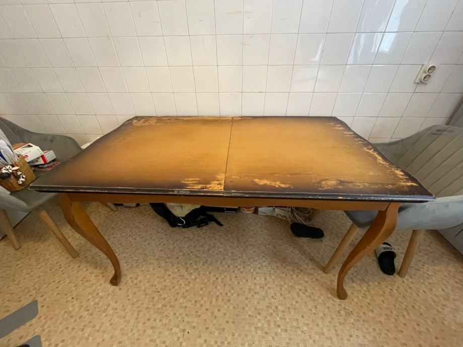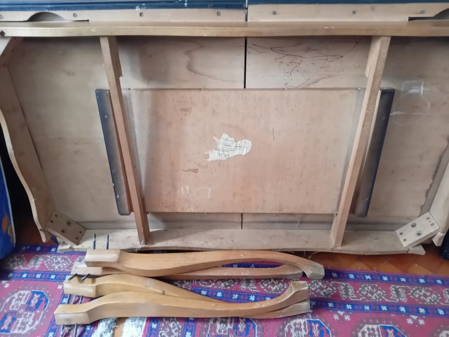 Poklanjamo stol puno drvo 140x80 rasklopljen je dužine 180x80, stol je rastavljen i spreman za nošenje.