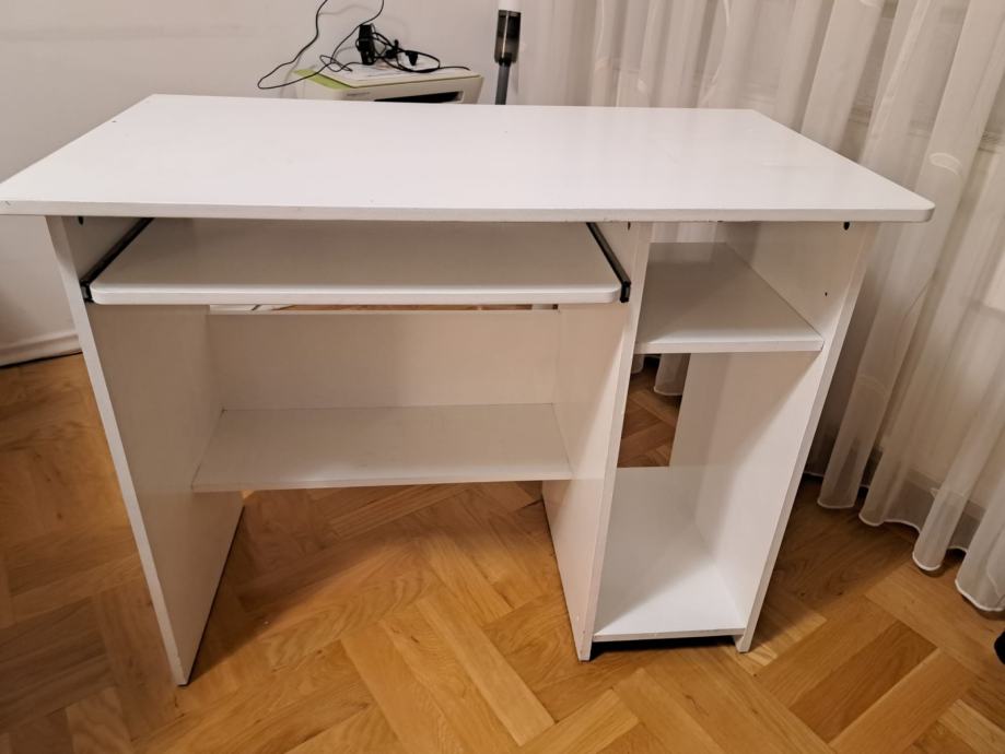 Poklanjam radni stol za računalo sa policom za tipkovnicu na izvlačenje 92x50 cm i stolicu na kotačima. Samo pozivi, ne odgovaram na poruke i mailove.