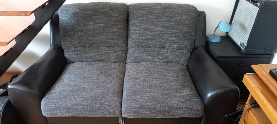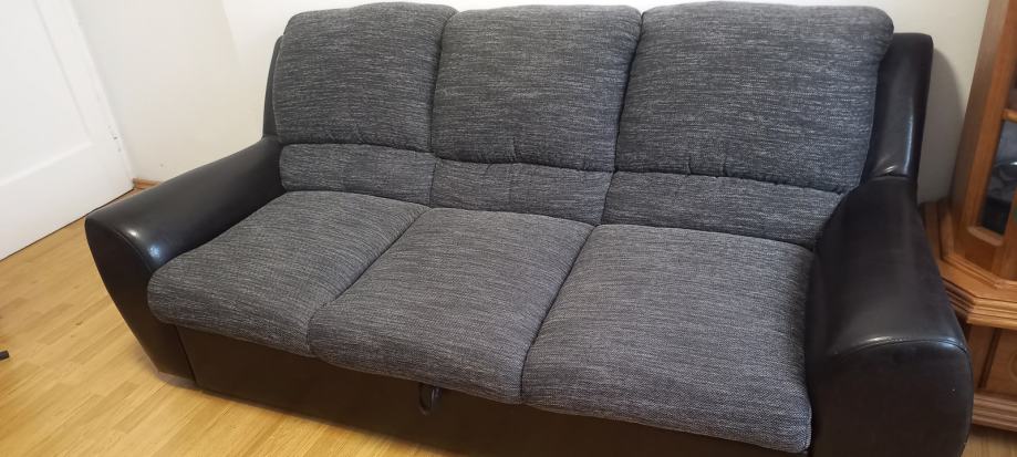 Poklanjam trosjed i dvosjed. Trosjed je na razvlačenje i može poslužiti kao bračni krevet a dvosjed ima kutiju na izvlačenje.