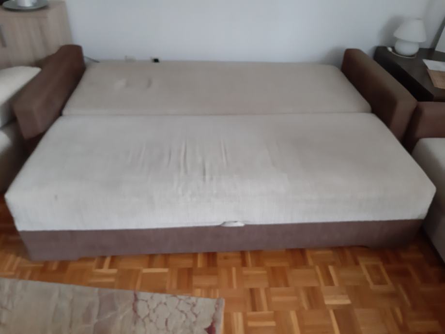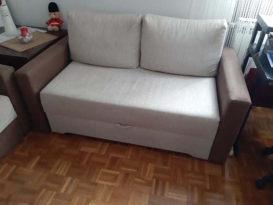 Trosjed i dvosjed imaju kutiju za odlaganje stvari a trosjed se razvlači u krevet za dvoje.