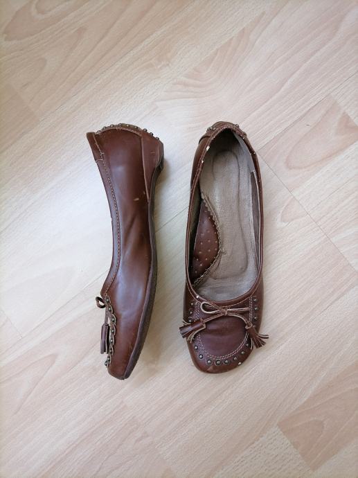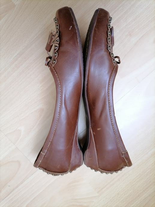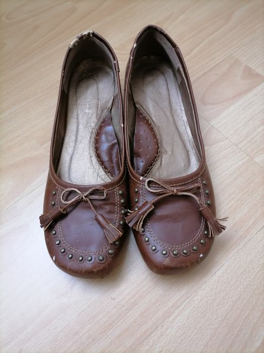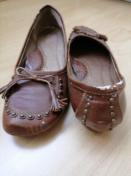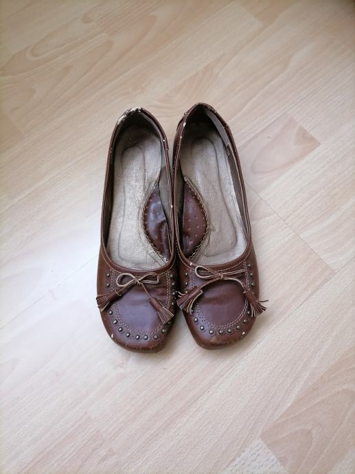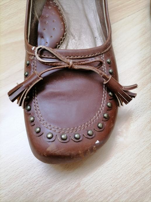 Poklanjam ženske smeđe cipele s malom peticom. Male zakovice na prstima i peti i mašnom naprijed.