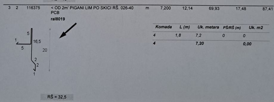 Prodajem ploču trapeznog lima T30 širine 122 cm i 170 cm dužine sa dvije pripadajuće veter weter lajsne dužine 180 cm (kao na skici). Sve RAL 8109. Kupljno u Sebastijanu, ostao višak. Sve zajedno 50 EUR.