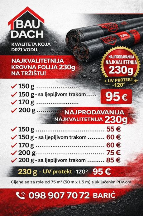Krovna paropropusna folija BAU DACH 170g!! Najprodavanija za 60 eura