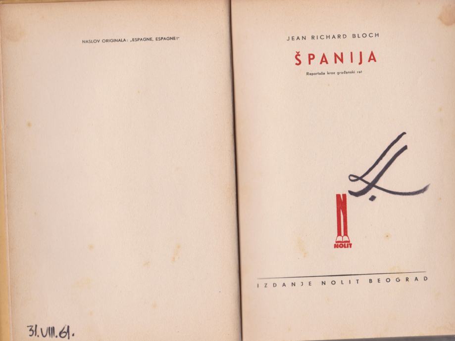 Jean Richard Bloch: ŠPANIJA, Nolit, Beograd 1936.