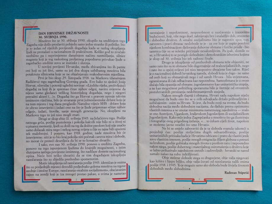 Knjižica je povjesni trenutak stvaranja RH. 30. Svibnja. 1990 god.
