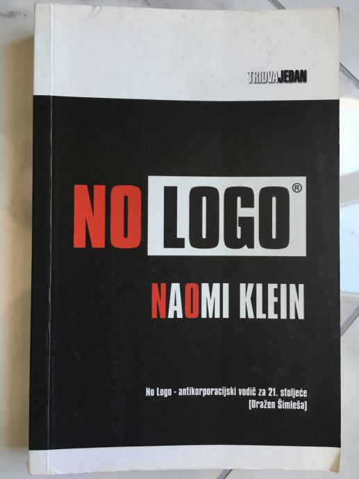 Naslov knjige "No logo" predstavlja pokušaj kanadske autorice Naomi Klein da dokumentira, shvati i približi što većem broju ljudi antikorporacijski pristup, koji se pojavljuje među mladim aktivistima. Poglavlja knjige: "Bez prostora", "Bez izbora", "Bez posla" analiziraju korporacijske sile koje napadaju tri društvena stupa - zapošljavanje, civilne slobode i javni prostor, što je na kraju rezultiralo aktivizmom, predstavljajući tako alternativu korporacijskoj vladavini - "No logo".