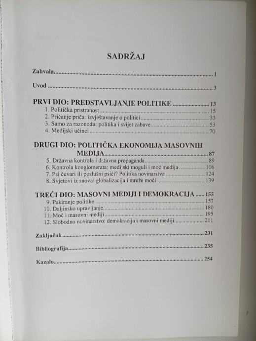 Rasprava o stalnom mijenjanju prirode odnosa između politike i masovnih medija podijeljena je u tri dijela: prvi dio se bavi načinom na koji se politika predstavlja u masovnim medijima, te kakav medijski sadržaj utječe na misli i djela, u drugom dijelu se raspravlja o institucionalnim interesima države ili komercijalnog sektora koji ustrojavaju masovne medije i nameću im svoju politiku, da bi se u trećem dijelu osvrnulo na buduće oblike toga odnosa.