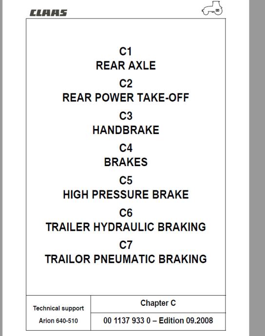 Claas Arion 510 520 530 540 610 620 630 640 Radionički priručnik