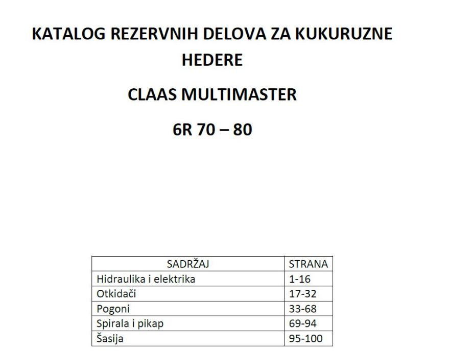 Claas Multimaster 6R (6-70, 6-75, 6-80) hederi - Katalog dijelova
