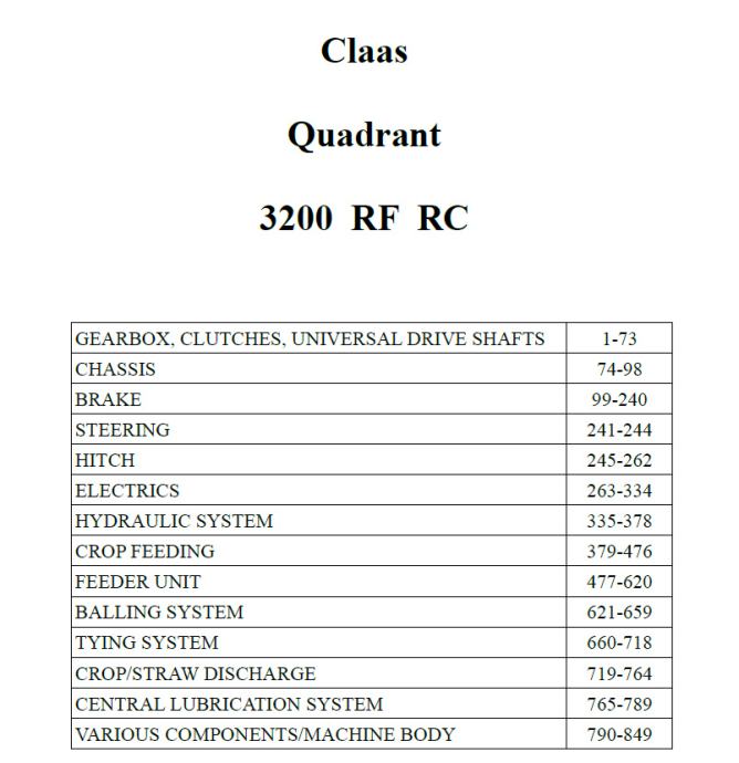 849 strana sa slikama sklopova i kataloškim brojevima dijelova.