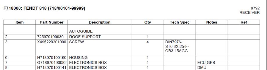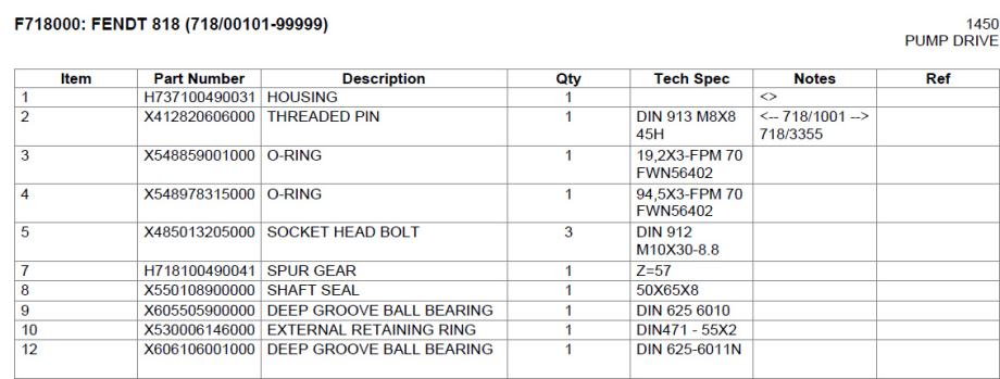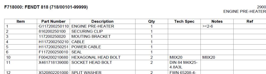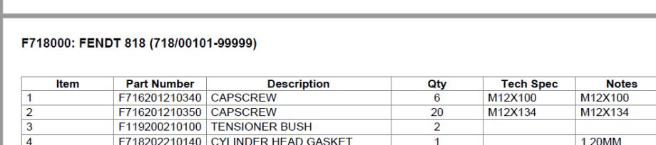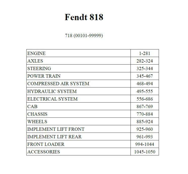 1050 strana sa slikama sklopova i kataloškim brojevima dijelova.