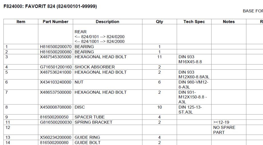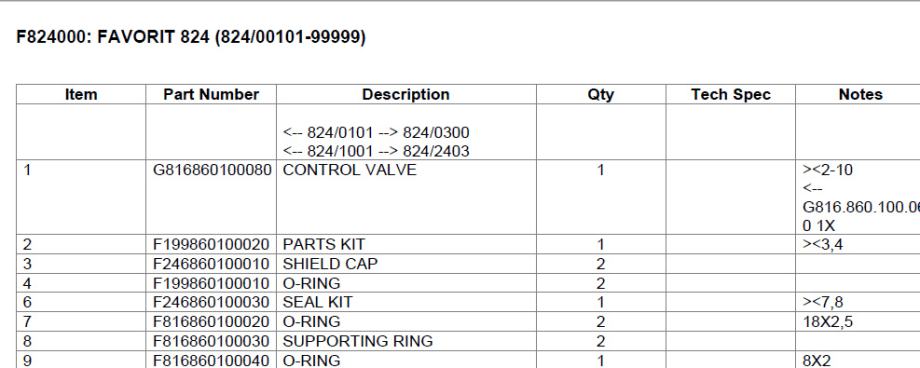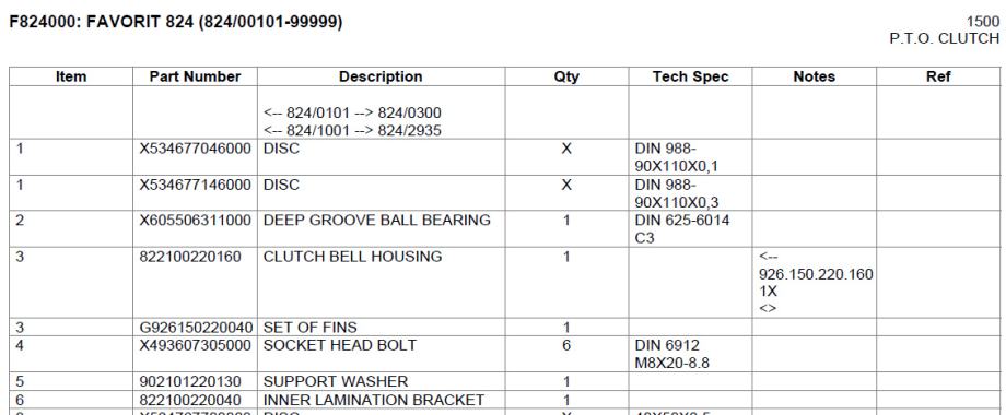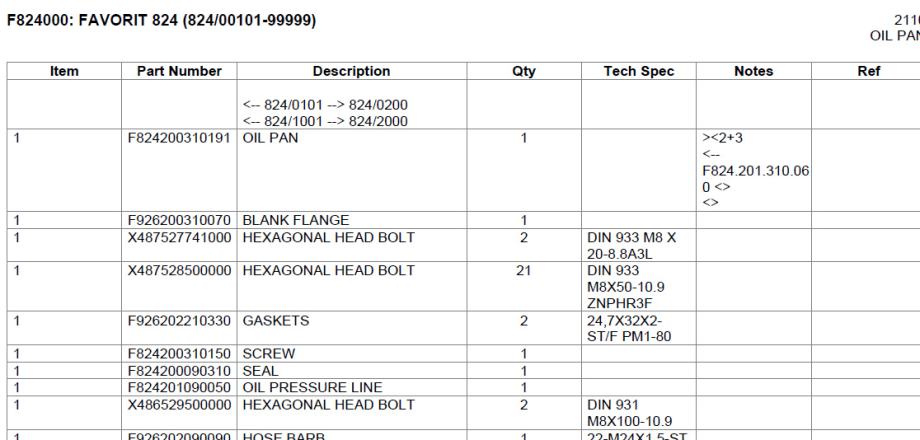 1463 stranice sa slikama sklopova i kataloškim brojevima dijelova.