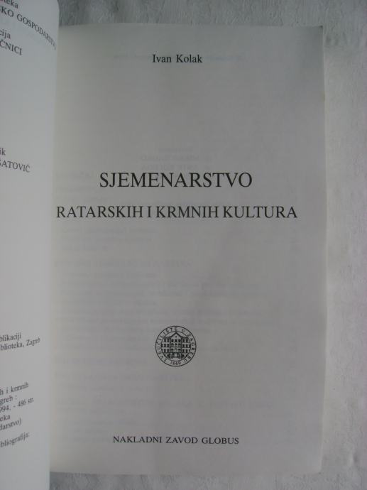 Ivan Kolak - Sjemenarstvo ratarskih i krmnih kultura - izdavač Nakladni zavod Globus, Zagreb 1994. godine, 15 x 23 cm, meki uvez, 454 stranice + reklame, ilustrirano.
