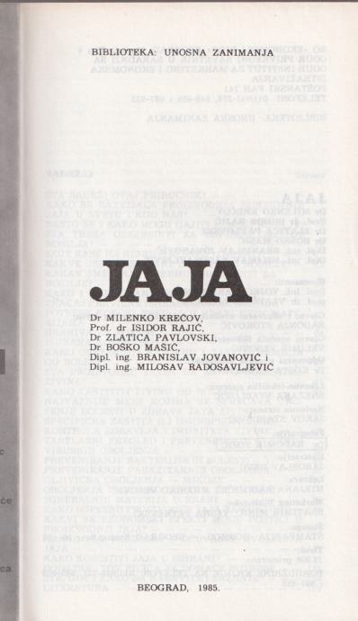 JAJA – 14x24 cm; 129 str, iz bibliteke: Unosna zanimanja, pisci; dr. M. Krečov i prof. I. Rajić i dr. Z. Pavlovski,