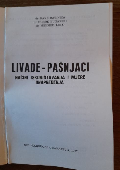 D. Batinica, Đ. Bugarski, M. Lulo "Livade-pašnjaci, načini iskorištavanja i mjere unapređenja". NIP "Zadrugar", Sarajevo, 1977.127 strana, sadržaj dostupan na fotografijama.