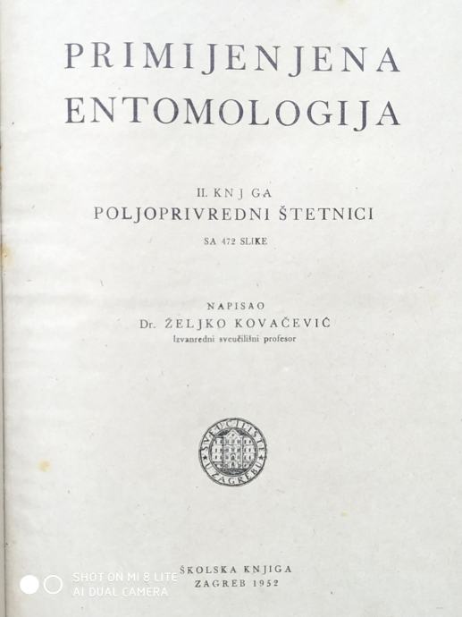 Željko Kovačević: Primijenjena entomologija. II. knjiga.