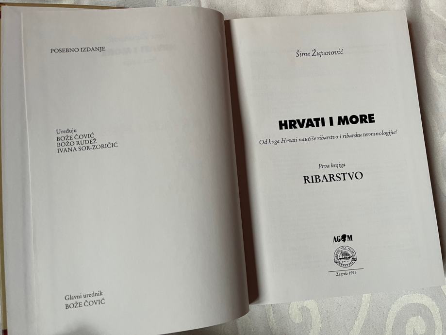 Prve dvije izišle knjige bave se poviješću tisućgodišnjeg ribarstva u Hrvata, od 995. godine do danas, dok je u trećem svesku detaljno obrađena ribarska terminologija po regijama i nazivlje iz naše pomorske, meteorološke i brodograđevne terminologije vezane uz more i ribarstvo. Knjiga ima nekoliko stotina slikovnih priloga i sažetke na engleskom i talijanskom jeziku. U četvrtom su svesku Kazala osobnih imena i zemljopisnih naziva za sve tri knjige.
