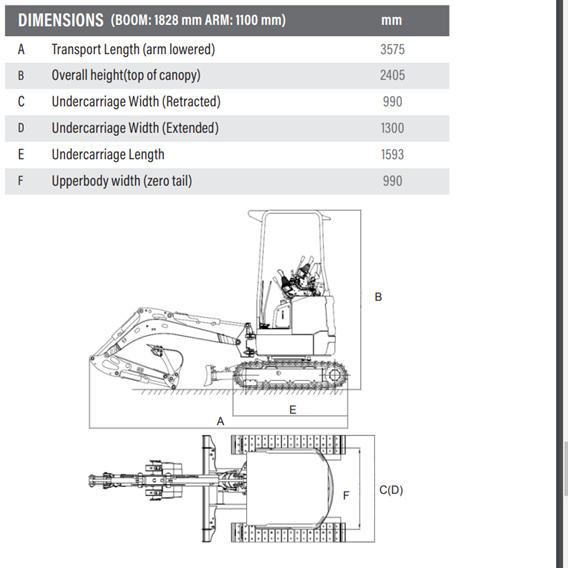 - Ukupna dužina (spuštena ruka): 3.575 mm