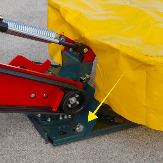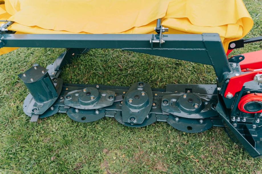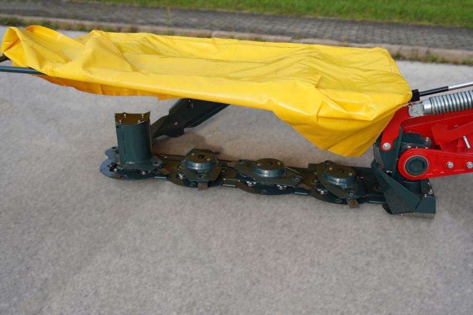 Izdržljiva rezna letva s klizačima pruža dug vijek trajanja, a podizna cerada olakšava pristup reznom sustavu radi održavanja i čišćenja. Usmjerivačka letva brine za pravilno odlaganje pokošenog materijala. Kosa je opremljena s dvjema potpornim nogama za sigurno parkiranje kada nije u uporabi, a kardansko vratilo već je uključeno u cijenu.
