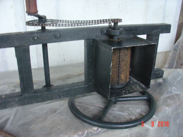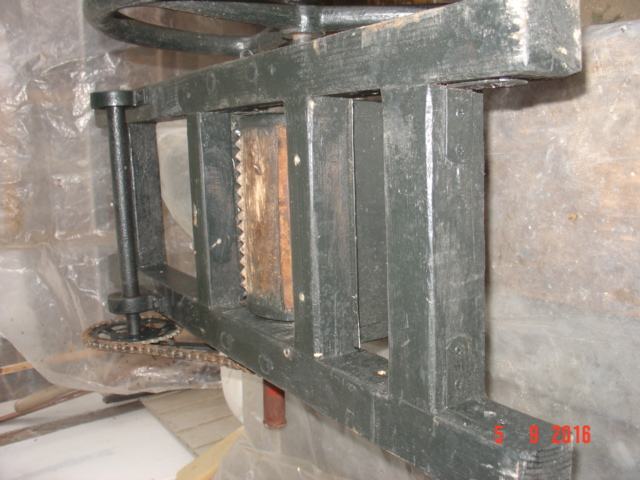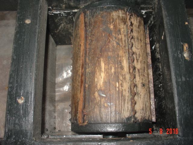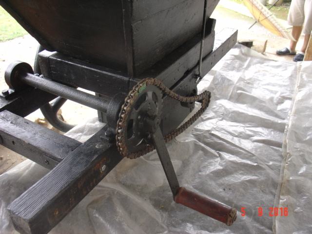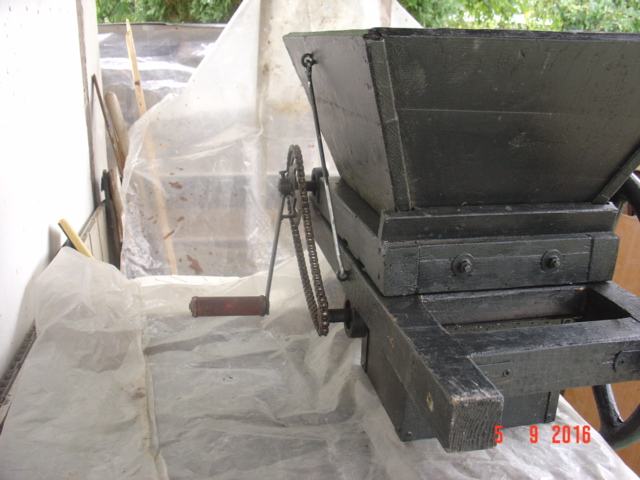 Drobilica je izrađena je od drva osim pogonskih dijelova / zamašnjak i lančani prijenos na bubanj za drobljenje jabuka koji su odvojeni od kontakta sa jabukama /.