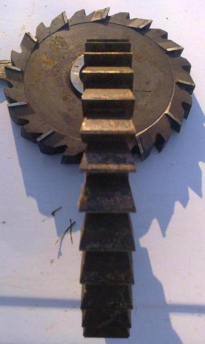 Pradajem 2 ravna glodala promjera 20 cm sa rupom promjera 4 cm od 28 zuba (širina zuba 2.7cm). Glodalo glođe naprijed i bočno (lijevo i desno). Prodajem 2 križna glodala promjera 20 cm sa rupom promjera 4 cm od 28 zuba (širina zuba 2.3cm). Glodalo glođe naprijed i bočno svaki drugi zub). Materijal - čelik HSS.
