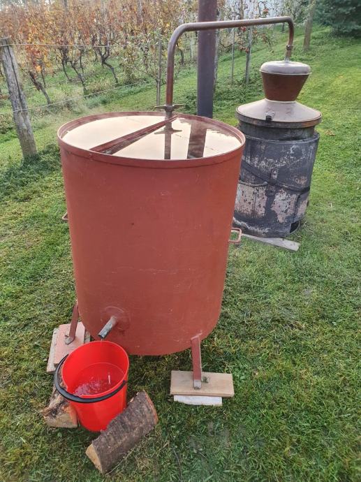 Kotao za pečenje rakije 60 litara sa novom bačvom za hlađenje od 200 litara.